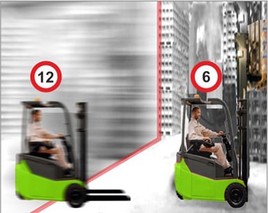 Inaczej mówiąc, wózek widłowy może z normalną prędkością wykonywać swoje zadania na otwartej przestrzeni, w której nie ma pracowników pieszych, na przykład na nabrzeżu portowym, ale w przy wjeździe do magazynu lub innego obiektu, gdzie poruszają się pracownicy piesi, prędkość wózka zostanie automatycznie zmniejszona, bez konieczności reakcji ze strony kierowcy. Radar dachowy zapobiega negatywnym efektom zaniedbania lub rozproszenia uwagi kierowcy wózka, który może zapomnieć zmniejszyć prędkość, gdy jest to potrzebne.