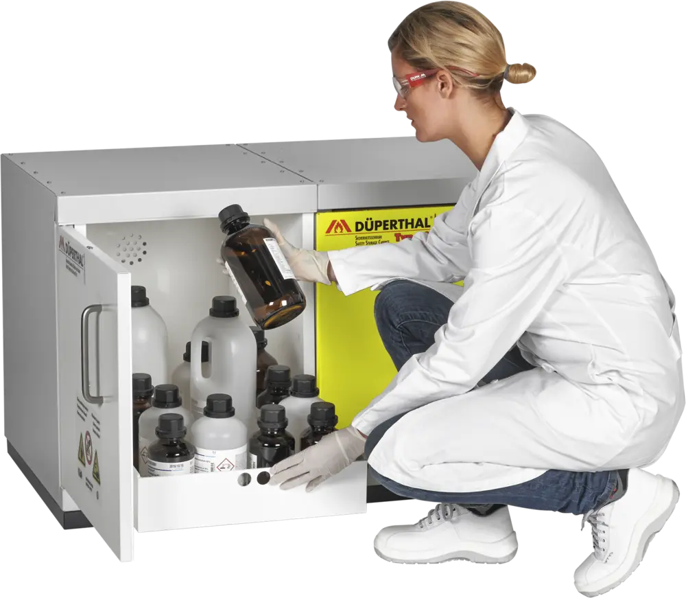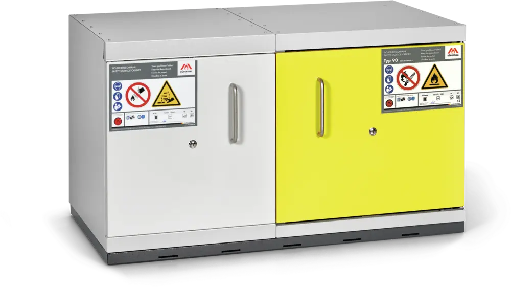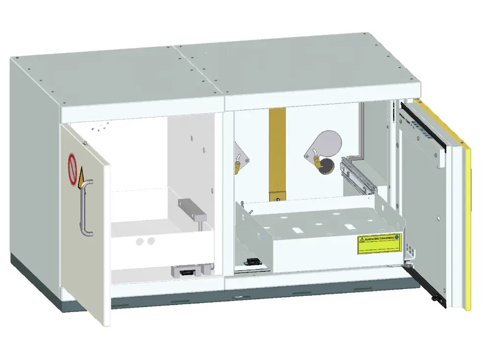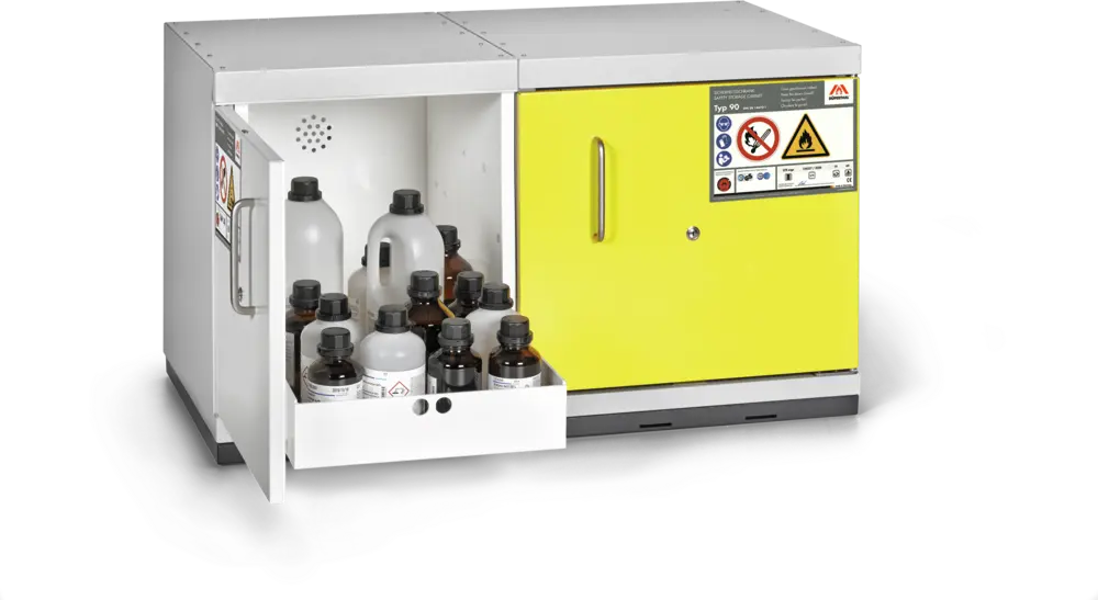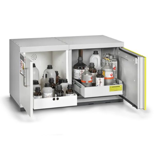 Wielofunkcyjne rozwiązanie podblatowe przeznaczone do bezpiecznego i pasywnego składowania. Zapewnia bezpieczne magazynowanie materiałów łatwopalnych (Typ 90 - 90 min). Ponadto umożliwia jednoczesne składowanie materiałów toksycznych oraz innych niebezpiecznych chemikaliów. Przystosowana jest do przechowywania substancji w pojemnikach o różnej pojemności. Stosowana w pomieszczeniach roboczych, takich jak laboratoria i hale produkcyjne, w bezpośrednim pobliżu stanowiska pracy, pod blatami roboczymi. Profesjonalne rozwiązanie spełniające najwyższe normy polskie i europejskie, eliminujące potrzebę budowania oddzielnych pomieszczeń magazynowych.