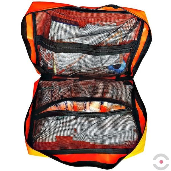 - Pomarańczowy kolor pomaga w szybkim znalezieniu torby i w sprawnym udzieleniu pierwszej pomocy