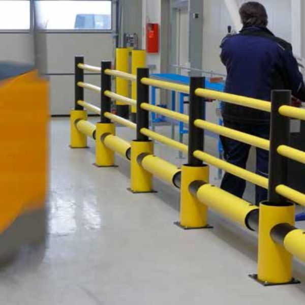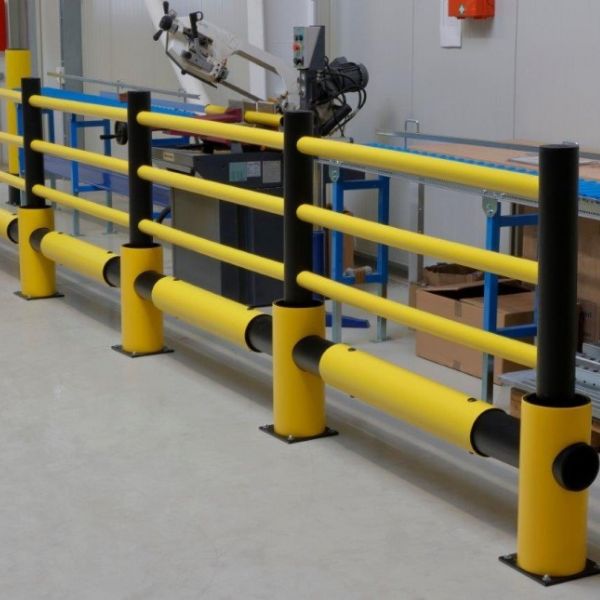 Bariera elastyczna d-flexx KILO to zaawansowane rozwiązanie ochronne, które łączy w sobie funkcjonalność bariery FOXTROT i CHARLIE, zapewniając wyższy poziom bezpieczeństwa w strefach pieszych i przy maszynach. Dzięki dodatkowej belce wzmacniającej bariera skutecznie chroni zarówno pracowników, jak i cenne urządzenia przed skutkami kolizji.