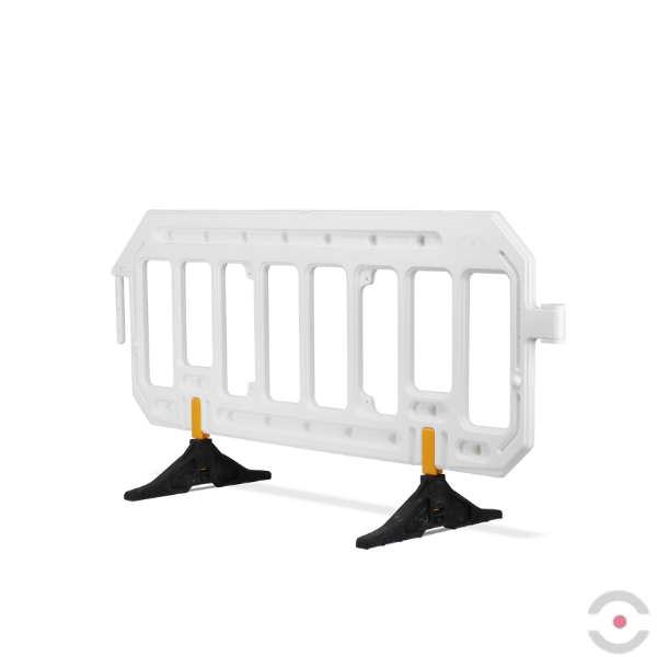 - Łączniki hakowe umożliwiają szybkie, trwałe i stabilne łączenie barier między sobą.