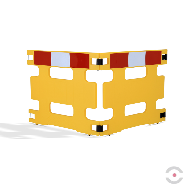Dwuczęściowa bariera ochronna stanowi doskonałe rozwiązanie do odgradzania obszarów roboczych, niebezpiecznych miejsc i przeszkód w przestrzeni publicznej.