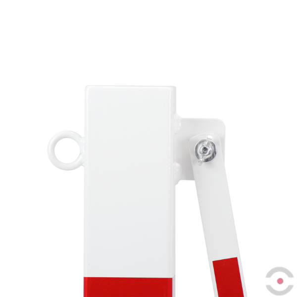 - Posiada słupek stalowy (70x70 mm, wysokość 1000 mm) mocowany do podłogi oraz jedną stabilną stopę na kółkach umożliwiającą wygodne manewrowanie barierą na podłodze