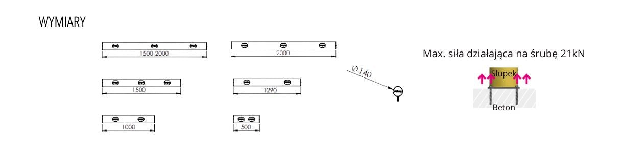 - Niskoprofilowa konstrukcja (wysokość 140 mm) – idealna do ochrony przy podłożu