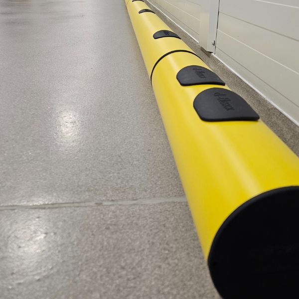 Elastyczna bariera podłogowa d-flexx MIKE to specjalistyczne rozwiązanie zaprojektowane z myślą o ochronie na poziomie posadzki. Dzięki swojej konstrukcji przypominającej krawężnik, skutecznie chroni ściany, linie montażowe, maszyny oraz infrastrukturę krytyczną przed uszkodzeniami spowodowanymi przez przesuwane ładunki, wózki widłowe czy inne pojazdy. Może być stosowana samodzielnie lub jako uzupełnienie innych barier ochronnych d-flexx, tworząc spójny i skuteczny system zabezpieczeń.