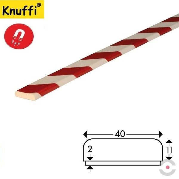 Elastyczny profil ostrzegawczo-ochronny magnetyczny Knuffi, typ F to profesjonalne zabezpieczenie przeznaczone do ochrony i oznaczania niebezpiecznych miejsc, w których występują krawędzie, uskoki, narożniki lub inne przeszkody mogące powodować urazy lub uszkodzenia wyposażenia. Dzięki magnetycznemu mocowaniu profil może być błyskawicznie zamontowany i zdemontowany, co czyni go idealnym rozwiązaniem w środowiskach o zmiennym układzie stanowisk pracy.