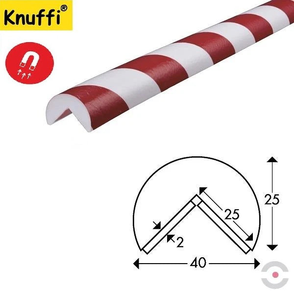 Elastyczny profil ostrzegawczo-ochronny magnetyczny Knuffi, typ A to profesjonalne zabezpieczenie przeznaczone do ochrony i oznaczania niebezpiecznych miejsc, w których występują krawędzie, uskoki, narożniki lub inne przeszkody mogące powodować urazy lub uszkodzenia wyposażenia. Dzięki magnetycznemu mocowaniu profil może być błyskawicznie zamontowany i zdemontowany, co czyni go idealnym rozwiązaniem w środowiskach o zmiennym układzie stanowisk pracy.