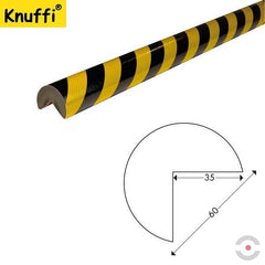 - Wykonany z pianki poliuretanowej, która chroni przed urazami ciała oraz zabezpiecza elementy maszyn, regałów, dróg transportowych i pomieszczeń o niskim stropie
