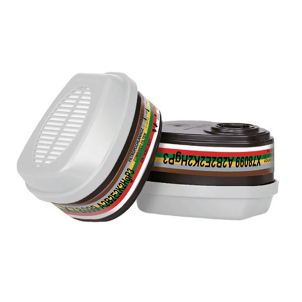 Filtropochłaniacz OxyPRO X78099 ABEK2HgP3 to wielokrotnego użytku element ochrony dróg oddechowych, przeznaczony do masek dwufiltrowych. Filtropochłaniacz ze złączem bagnetowym chroni przed szerokim spektrum gazów, par i aerozoli: organicznymi parami i gazami o temperaturze wrzenia powyżej 65°C, nieorganicznymi parami i gazami (z wyjątkiem tlenku węgla), dwutlenkiem siarki oraz parami i gazami kwaśnymi, amoniakiem i pochodnymi amoniaku, a także rtęcią i oparami rtęci, pod warunkiem że stężenie objętościowe tych substancji w powietrzu nie przekracza 0,5%. Produkt współpracuje z maskami pełnotwarzowymi serii OxyPRO X8. Obudowa filtropochłaniacza wykonana jest z odpornego na uderzenia i odkształcenia materiału ABS.