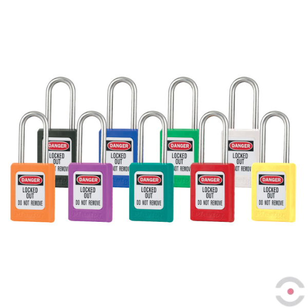 Kompozytowa kłódka bezpieczeństwa (Ex) do blokad, używana przy blokadach elektrycznych i mechanicznych zarówno na zewnątrz jak i wewnątrz budynków.