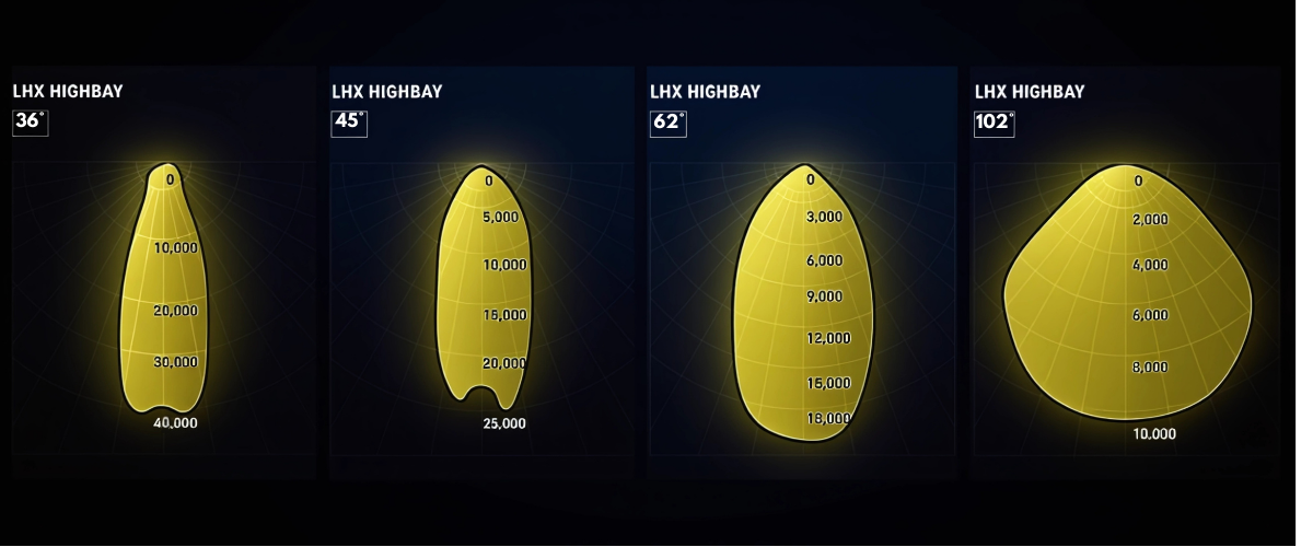 - Kąt wiązki światła 102° – opcjonalnie dostępne do wyboru także soczewki 36°, 45°, 62°, co pozwala dostosować rozsył światła do specyfiki obiektu