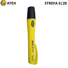 Profesjonalna latarka długopisowa, bateryjna przeznaczona do pracy w atmosferach potencjalnie wybuchowych Ex (strefy 0/20). Lekka, wszechstronna, solidna i wygodna w noszeniu. Mieści się w kieszeni lub może być przymocowana do hełmu/kasku