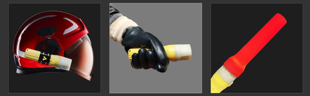 - Może być używana zarówno jako latarka ręczna, jak i łatwo montowana na hełmie strażackim lub ratowniczym, co pozwala na swobodną pracę oburącz podczas akcji