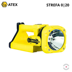 Profesjonalna lampa (szperacz) akumulatorowa z obrotową główką (głowicą), przystosowana do najbardziej wymagających i niekorzystnych warunków pracy, strefy zagrożenia wybuchem Ex (strefy 0/20). Sta...