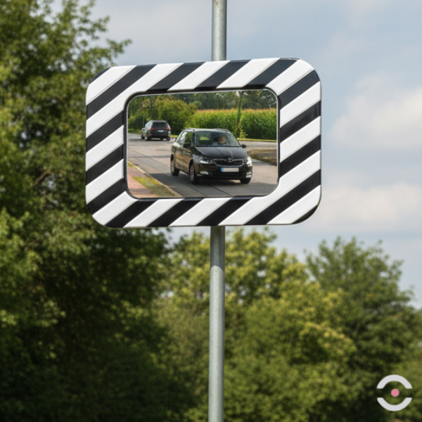 - Lustro 40x60 cm zapewnia doskonałą widoczność z odległości 9-15 m, zwiększając bezpieczeństwo na skrzyżowaniach i wyjazdach o ograniczonej widoczności.