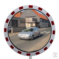 - Lustro o średnicy 60 cm zapewnia doskonałą widoczność z odległości 9–15 m, zwiększając bezpieczeństwo na skrzyżowaniach i wyjazdach o ograniczonej widoczności.