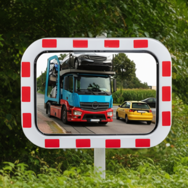 - Lustro 40x60 cm zapewnia doskonałą widoczność z odległości 9–15 m, zwiększając bezpieczeństwo na skrzyżowaniach i wyjazdach o ograniczonej widoczności.