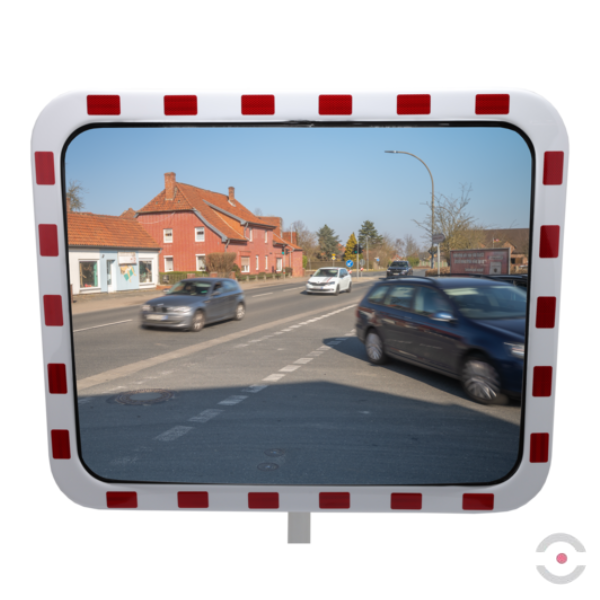 - Lustro 80x100 cm zapewnia doskonałą widoczność z odległości 20–27 m, zwiększając bezpieczeństwo na skrzyżowaniach i wyjazdach o ograniczonej widoczności.