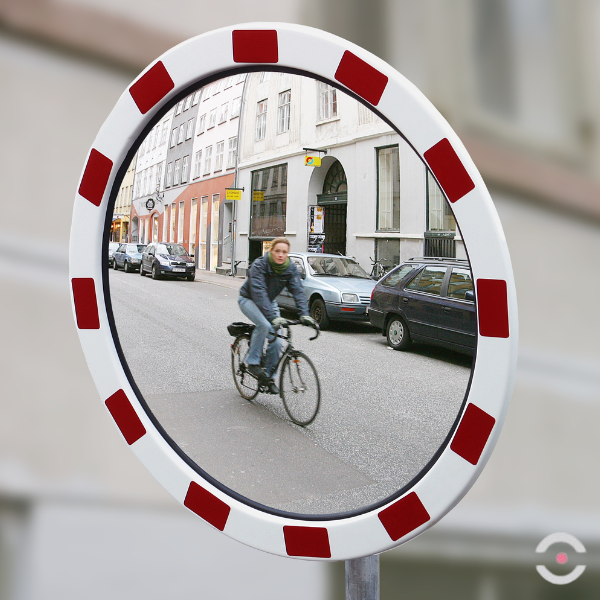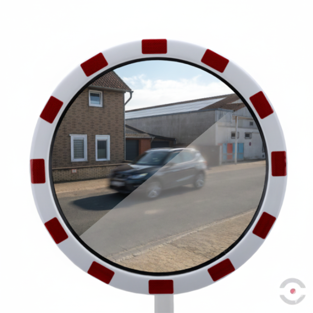 - Lustro o średnicy 60 cm zapewnia doskonałą widoczność z odległości 9–15 m, zwiększając bezpieczeństwo na skrzyżowaniach i wyjazdach o ograniczonej widoczności.