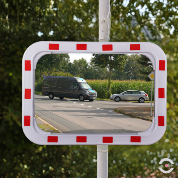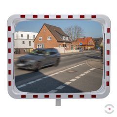 - Lustro 40x60 cm zapewnia doskonałą widoczność z odległości 9–15 m, zwiększając bezpieczeństwo w miejscach o ograniczonej widoczności.