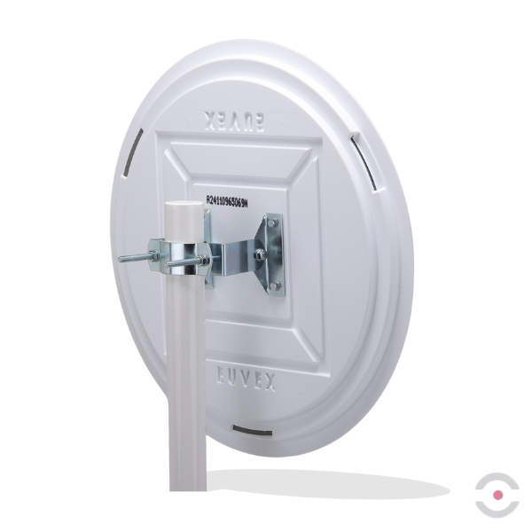 - Lustro o średnicy 60 cm zapewnia doskonałą widoczność z odległości 9-15 m, zwiększając bezpieczeństwo w miejscach o ograniczonej widoczności.