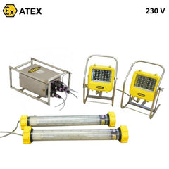 Tank Lighting Kit LX-237T4 to kompletny zestaw tymczasowego oświetlenia Ex przeznaczony do pracy w atmosferach zagrożonych wybuchem (strefy 1/2 – gazy oraz 21/22 – pyły). Zestaw zapewnia intensywne i równomierne oświetlenie dużych oraz mniejszych przestrzeni roboczych, łącząc 2 lampy LX-400, 2 lampy WF-300 oraz transformator Ex 24 V, dzięki czemu użytkownik otrzymuje kompletny system gotowy do natychmiastowego montażu i pracy w strefach Ex.