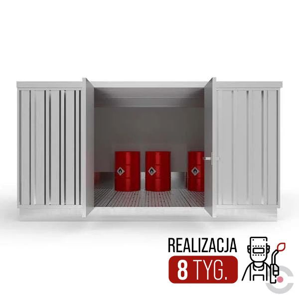 Izolowany, jednopoziomowy magazyn przeznaczony do bezpiecznego, pasywnego składowania substancji niebezpiecznych – w tym chemikaliów, cieczy łatwopalnych, środków ochrony roślin oraz materiałów wra...