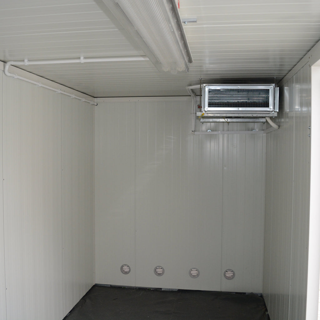 - Izolacja: Ściany, drzwi i dach z 60 mm niepalnej izolacji chroniącej przed wahaniami temperatury i czynnikami zewnętrznymi.
