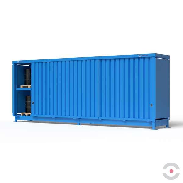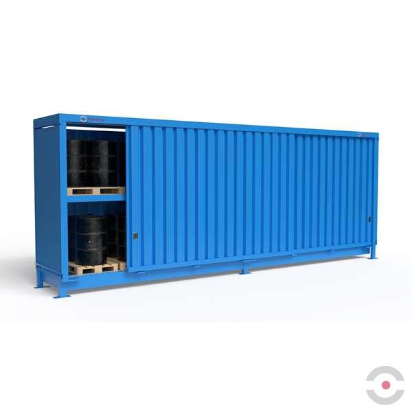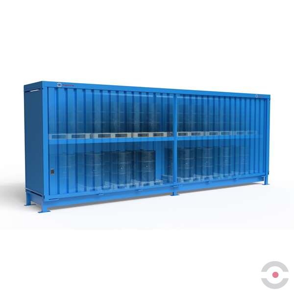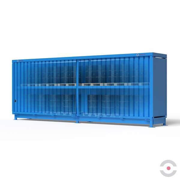 - Składowanie: Przystosowany do przechowywania 48 × 200 l na palecie przemysłowej lub 32 × 200 l na europalecie.