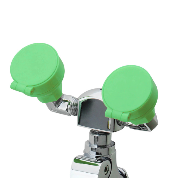 - Głowice do płukania twarzy i oczu z tworzywa ABS, posiadają wbudowane klapki przeciwpyłowe, wewnętrzne regulatory przepływu oraz filtry usuwające zanieczyszczenia z wody.