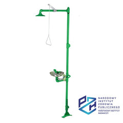 Kompletne urządzenie awaryjne, gotowe do natychmiastowej instalacji. Łączy funkcje natrysku awaryjnego oraz myjki do oczu i twarzy. Pozwala na skuteczne i szybkie spłukanie niebezpiecznych płynów z całego ciała.