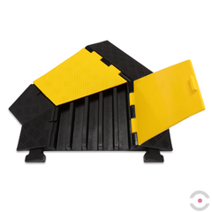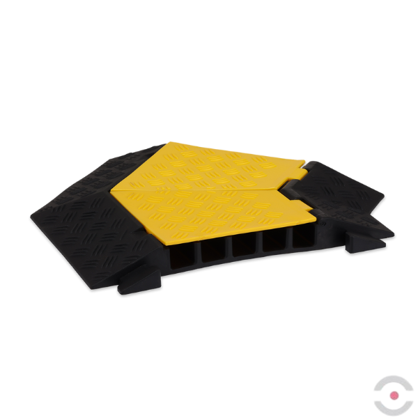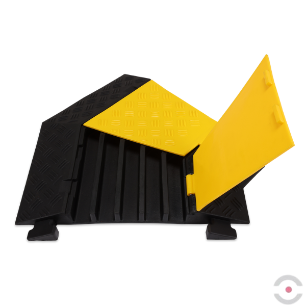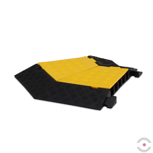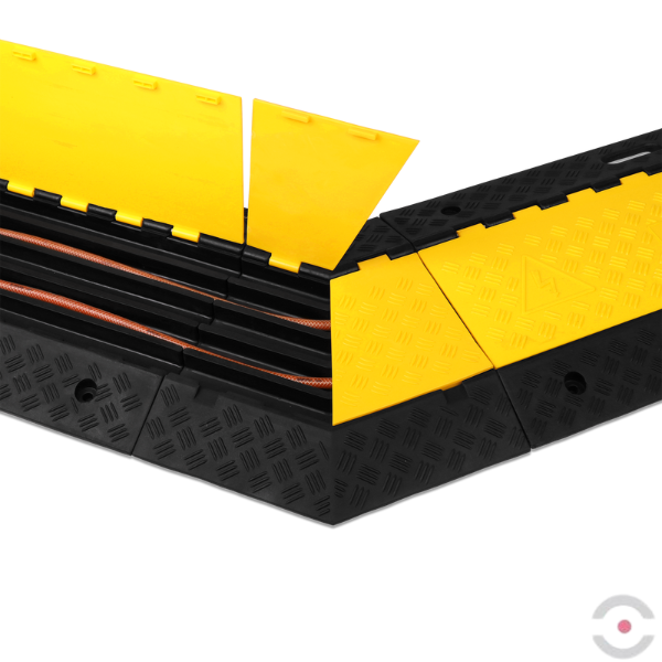 Element narożny 45°, przeznaczony do ochrony kabli i węży przed uszkodzeniami mechanicznymi oraz do tworzenia zakrętów w systemach osłon kablowych. Idealna do stosowania w halach przemysłowych, magazynach oraz na terenach zewnętrznych. Odporna na ruch pojazdów ciężarowych o obciążeniu na oś do 8 ton.