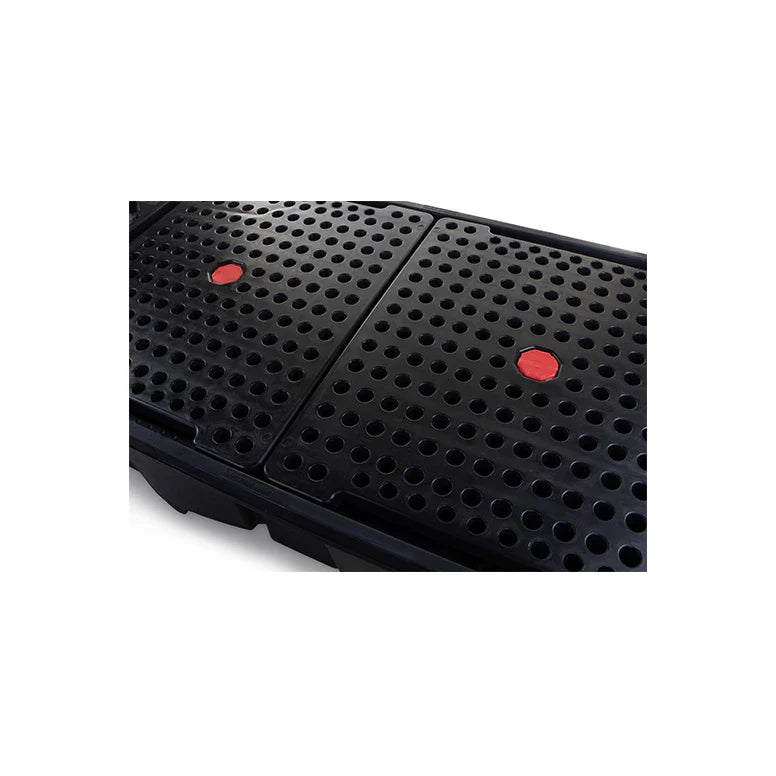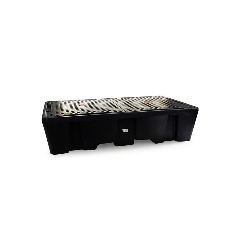 Wanna wychwytowa z kratownicą przeznaczona do składowania dwóch pojemników IBC/KTC o pojemności 1000 litrów każdy lub pojemników o mniejszej pojemności z olejami i substancjami chemicznymi, również tymi najbardziej agresywnymi. Zapewnia skuteczną ochronę powierzchni roboczych przed szkodliwymi wyciekami. Doskonale sprawdza się na halach produkcyjnych, magazynach chemii i warsztatach.
