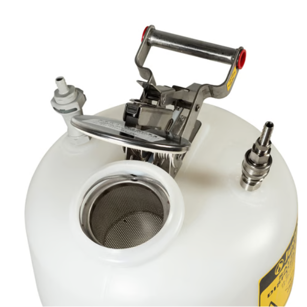 - Otwór wlewowy wyposażony w odcinacz płomienia ze stali nierdzewnej, który odprowadza ciepło i zapobiega zapłonowi zawartości pojemnika