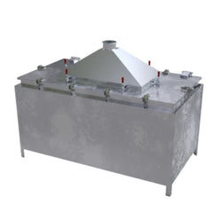 - Konstrukcja wykonana jest ze stali ocynkowanej (galwanizowanej), a grubość blachy ścian bocznych, dna oraz pokrywy wynosi 3,0 mm.
