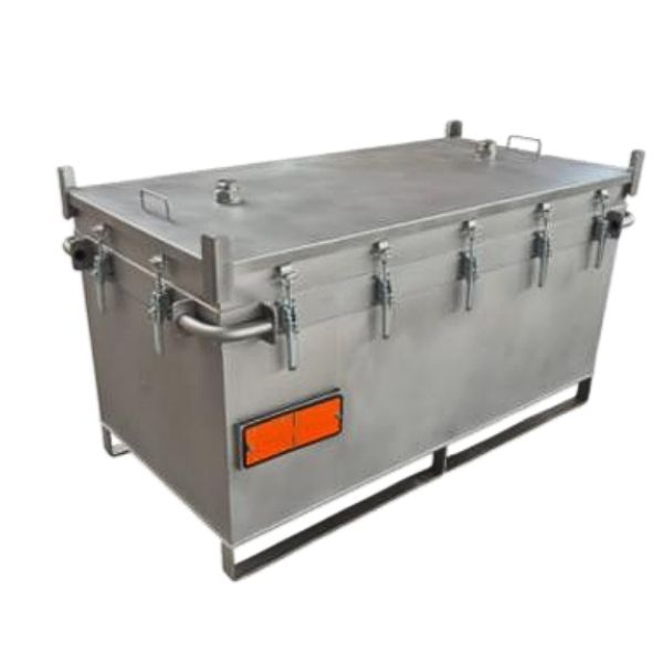 Certyfikowany, wielokrotnego użytku pojemnik transportowo-magazynowy wykonany ze stali nierdzewnej, przeznaczony do bezpiecznego przechowywania i transportu akumulatorów litowo-jonowych, modułów bateryjnych oraz ogniw, w tym również krytycznie uszkodzonych. Pojemnik został zaprojektowany z myślą o maksymalnym poziomie bezpieczeństwa oraz pełnej zgodności z międzynarodowymi przepisami transportu towarów niebezpiecznych ADR.