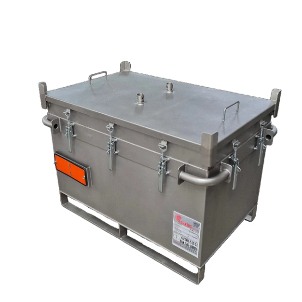 Certyfikowany, wielokrotnego użytku pojemnik transportowo-magazynowy wykonany ze stali nierdzewnej, przeznaczony do bezpiecznego przechowywania i transportu akumulatorów litowo-jonowych, modułów bateryjnych oraz ogniw, w tym również krytycznie uszkodzonych. Produkt został zaprojektowany z myślą o maksymalnym poziomie bezpieczeństwa oraz pełnej zgodności z międzynarodowymi przepisami transportu towarów niebezpiecznych ADR.