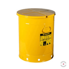 Pojemnik zabezpieczający stalowy na odpady olejowe przeznaczony do użytku w miejscach, w których stosowane są tkaniny nasączone rozcieńczalnikami, rozpuszczalnikami, olejami, w tym olejem lnianym, klejami łatwopalnymi oraz innymi płynami łatwopalnymi.