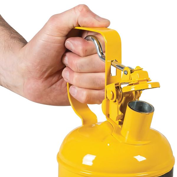 Pojemnik zabezpieczający stalowy na płyny łatwopalne pozwala na wygodne i bezpieczne przelewanie płynów łatwopalnych i kontrolowanie ich oparów.