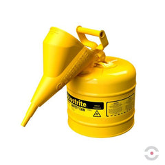 Pojemnik zabezpieczający stalowy na płyny łatwopalne z lejkiem, pozwala na wygodne i bezpieczne przelewanie płynów łatwopalnych i kontrolowanie ich oparów.