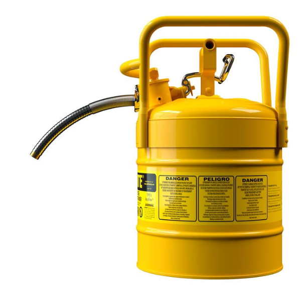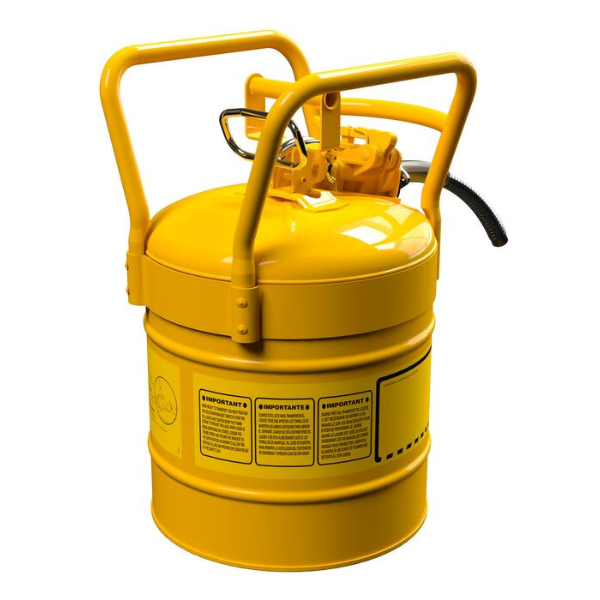 Stalowy pojemnik zabezpieczający na płyny łatwopalne typu II, umożliwia bezpieczny transport oraz dokładne, kontrolowane i bezpieczne przelewanie płynów łatwopalnych do mniejszych pojemników lub zbiorników.