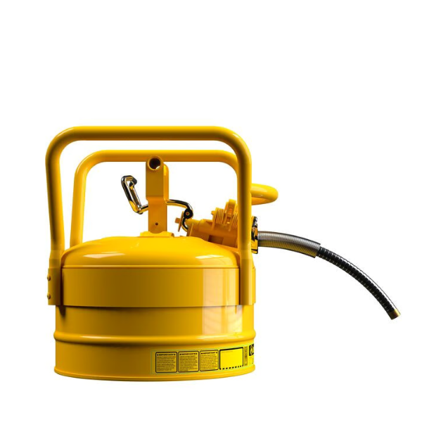 Stalowy pojemnik zabezpieczający na płyny łatwopalne typu II, umożliwia bezpieczny transport oraz dokładne, kontrolowane i bezpieczne przelewanie płynów łatwopalnych do mniejszych pojemników lub zbiorników.