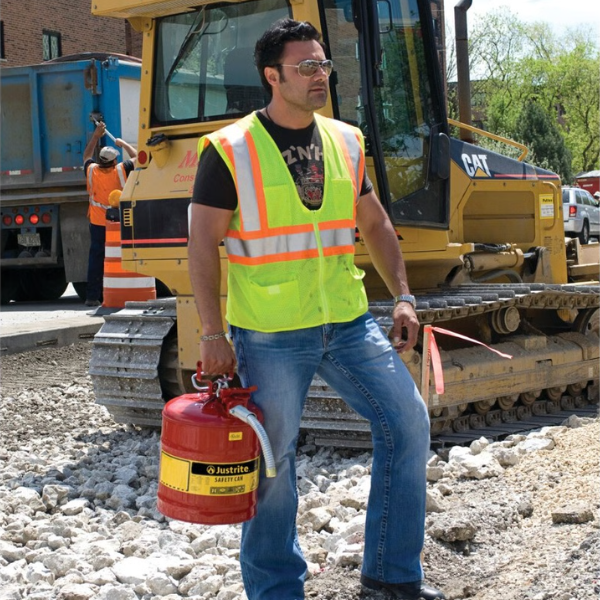 Stalowy pojemnik zabezpieczający na płyny łatwopalne typu II, umożliwia bezpieczny transport oraz dokładne, kontrolowane i bezpieczne przelewanie płynów łatwopalnych do mniejszych pojemników lub zbiorników.