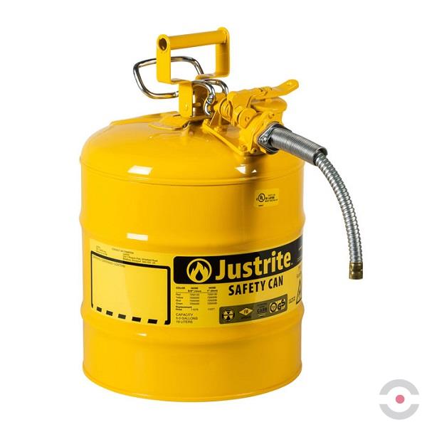 Stalowy pojemnik zabezpieczający na płyny łatwopalne typu II, umożliwia bezpieczny transport oraz dokładne, kontrolowane i bezpieczne przelewanie płynów łatwopalnych do mniejszych pojemników lub zbiorników.