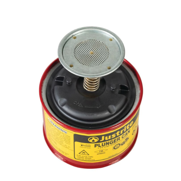 Tłokowy pojemnik ze stali przeznaczony do czyszczenia szmatek i ściereczek - umożliwia łatwe i szybkie zwilżanie tkanin z użyciem środków łatwopalnych.