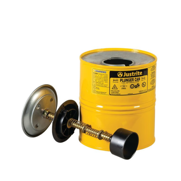 Tłokowy pojemnik ze stali przeznaczony do czyszczenia szmatek i ściereczek - umożliwia łatwe i szybkie zwilżanie tkanin z użyciem środków łatwopalnych.