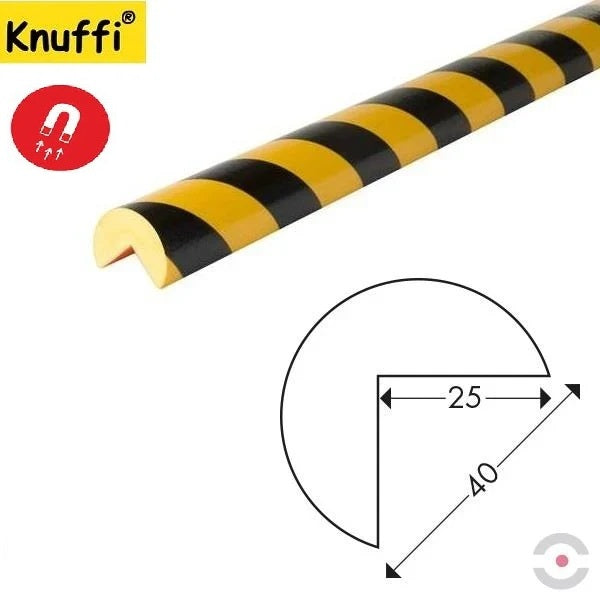 Elastyczny profil ostrzegawczo-ochronny magnetyczny Knuffi, typ A to profesjonalne zabezpieczenie przeznaczone do ochrony i oznaczania niebezpiecznych miejsc, w których występują krawędzie, uskoki, narożniki lub inne przeszkody mogące powodować urazy lub uszkodzenia wyposażenia. Dzięki magnetycznemu mocowaniu profil może być błyskawicznie zamontowany i zdemontowany, co czyni go idealnym rozwiązaniem w środowiskach o zmiennym układzie stanowisk pracy.