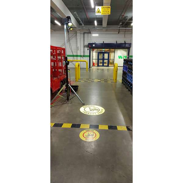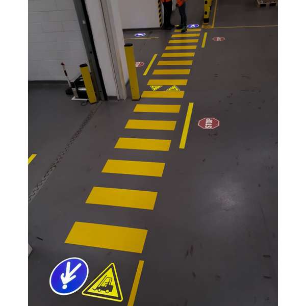 - Oznakowanie stref wejściowych i komunikacyjnych w zakładach przemysłowych i magazynach