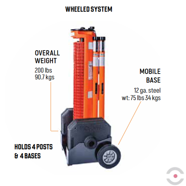 - System mobilny na kółkach pozwala szybko przemieścić barierkę w dowolne miejsce