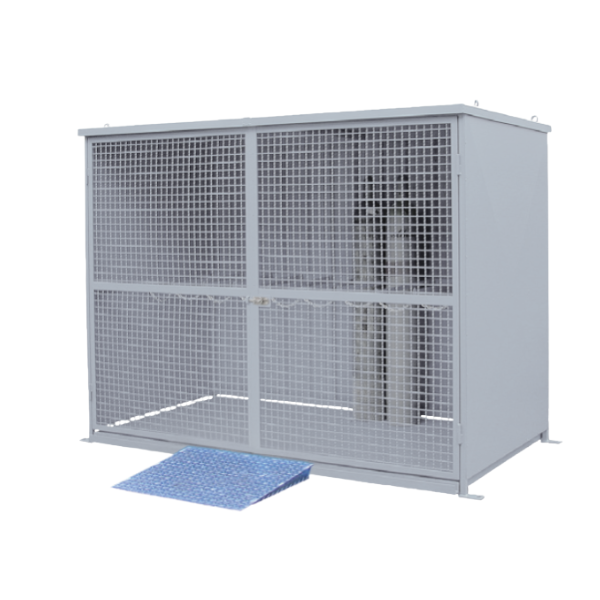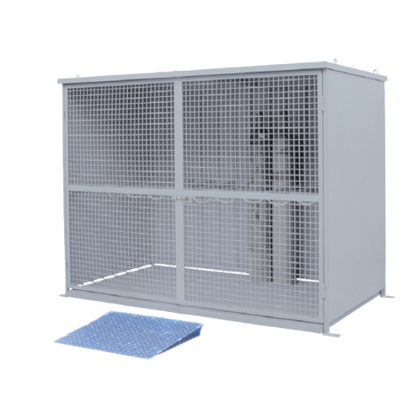 Rampa podjazdowa do magazynów chemicznych na butle gazowe. Ułatwia wjeżdżanie wózkami podnośnikowymi do wnętrza magazynu, zapewniając wygodę i bezpieczeństwo obsługi.
